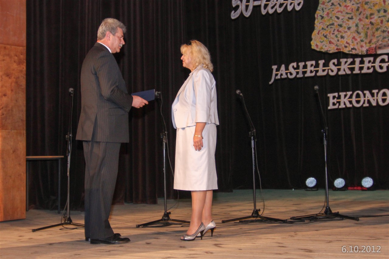 Ekonomik jest słynny zarówno w Jaśle, na Podkarpaciu, ale także i w Polsce, gdyż w Roku Jubileuszowym jest w czołówce krajowych szkół ponadgimnazjalnych. To efekt wieloletniej pracy wszystkich nauczycieli i pracowników. Każdy z kolejnych dyrektorów naszej Szkoły współtworzył ją, jej obraz i markę. Ja mam to szczęście, że sprawuję funkcję w tę piękną rocznicę i cieszę się z całą społecznością jasielskiego Ekonomika, że jest to Szkoła rozpoznawalna, o doskonałej reputacji i bardzo dobrych wynikach. Jeśli chodzi o sformułowanie „współtworzenie” to jest to dobre określenie. Dyrektor ma oczywiście swój wkład w kształtowanie obrazu Szkoły, ale jego działania nie miałyby szans powodzenia, gdyby nie praca wszystkich pracowników, ich zaangażowanie i pasja. Mając takich współpracowników można wiele osiągnąć w realizacji wizji Szkoły. Dodawszy do tego wzorową współpracę z rodzicami, uczniami – mogę powiedzieć bez fałszywej skromności – udało nam się stworzyć bardzo dobrą Szkołę.